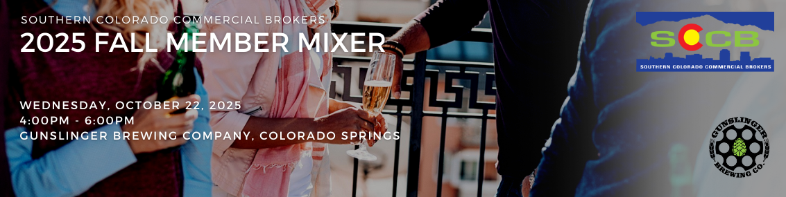 Welcome to the Southern Colorado Commercial Brokers (SCCB)! Your premier resource of real estate services for southern Colorado brokerage industry. In late 2014, Commercial real estate brokers and Realtors® in Colorado Springs and Southern Colorado formed a new non-profit professional organization, Southern Colorado Commercial Brokers (SCCB) that replaces their former group, RCIS, a committee of Pikes Peak Association of Realtors® (PPAR). SCCB’s mission is to provide commercial real estate Brokers, Realtors® and Business Affiliate organizations in the Southern Colorado region with a platform that promotes business integrity and ethical practices, and provides educational and networking opportunities, as well as accurate market information. SCCB Needs and Wants!Attention SCCB Members Only! The SCCB [email protected] email distribution is NOW available for your use! You must be a PAID SCCB Member to be included in this distribution list and/or utilize this EXCLUSIVE Needs and Wants Email Distribution List. Once your SCCB membership application is processed, you are automatically added to the distribution list. To begin using the Needs and Wants email distribution, simply add the following email address to your email contacts list and be sure to set as a "Safe Sender" - then enter this address in the recipient field. Click Here for the Needs & Wants User Guidelines! 2025 Marketing Opportunities NOW Available! Invest as a Sponsor of SCCB - your premier resource of real estate services for the Southern Colorado Brokerage Community. |