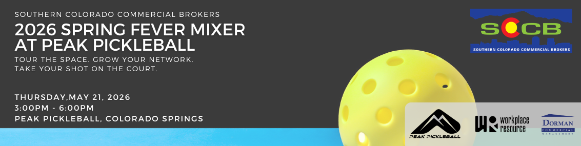 Welcome Southern Colorado Commercial Brokers! Welcome to the Southern Colorado Commercial Brokers (SCCB)! Your premier resource of real estate services for southern Colorado brokerage industry. In late 2014, Commercial real estate brokers and Realtors® in Colorado Springs and Southern Colorado formed a new non-profit professional organization, Southern Colorado Commercial Brokers (SCCB) that replaces their former group, RCIS, a committee of Pikes Peak Association of Realtors® (PPAR). SCCB’s mission is to provide commercial real estate Brokers, Realtors® and Business Affiliate organizations in the Southern Colorado region with a platform that promotes business integrity and ethical practices, and provides educational and networking opportunities, as well as accurate market information. SCCB Needs and Wants!Attention SCCB Members Only! The SCCB [email protected] email distribution is NOW available for your use! You must be a PAID SCCB Member to be included in this distribution list and/or utilize this EXCLUSIVE Needs and Wants Email Distribution List. Once your SCCB membership application is processed, you are automatically added to the distribution list. To begin using the Needs and Wants email distribution, simply add the following email address to your email contacts list and be sure to set as a "Safe Sender" - then enter this address in the recipient field. Click Here for the Needs & Wants User Guidelines! 2026 Marketing Opportunities NOW Available! Invest as a Sponsor of SCCB - your premier resource of real estate services for the Southern Colorado Brokerage Community. |
